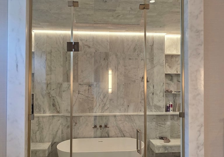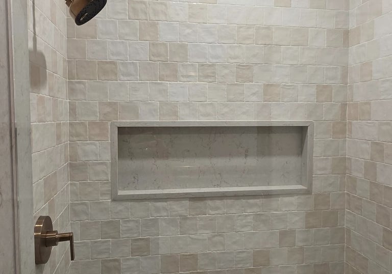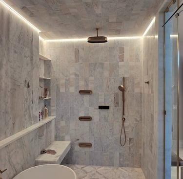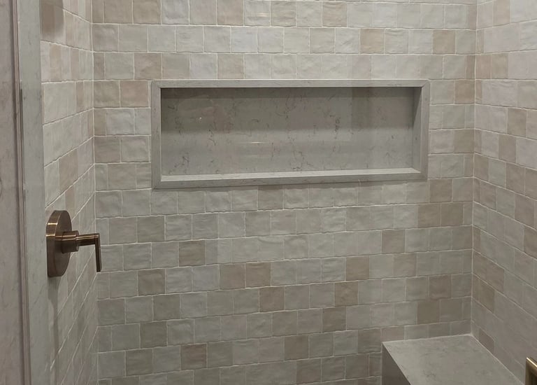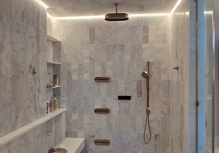 Niche alignment, epoxy grout on request, quiet-luxury detailing.